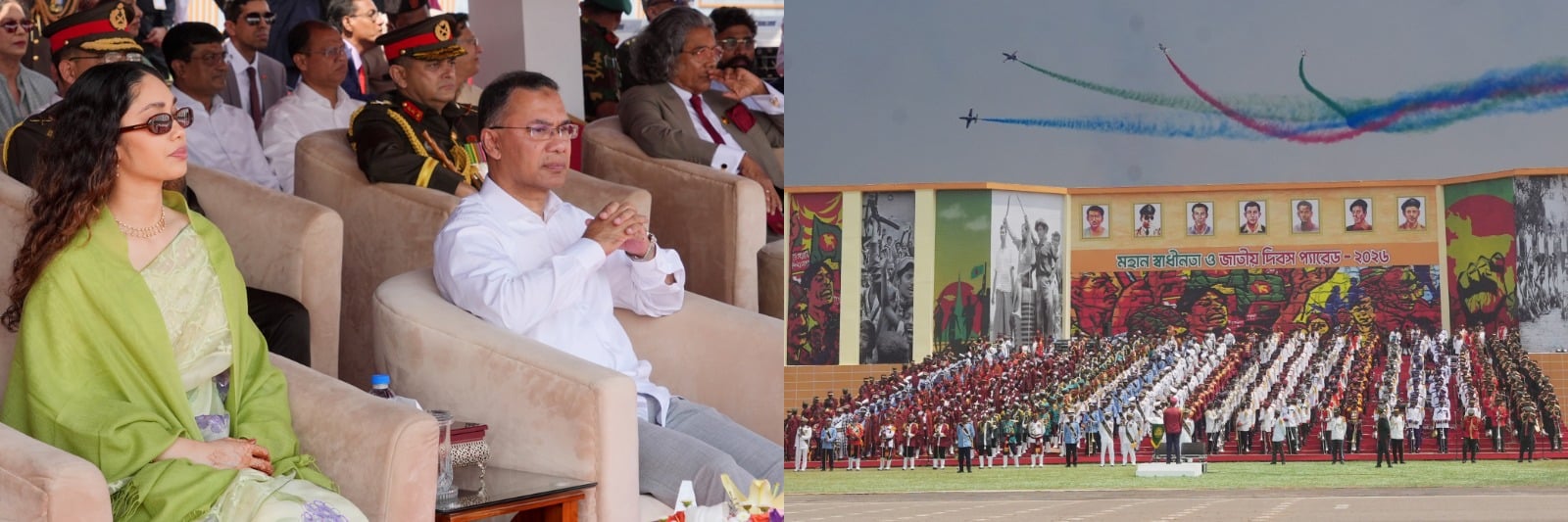 জাঁকজমকপূর্ণ কুচকাওয়াজে মুখর প্যারেড স্কয়ার