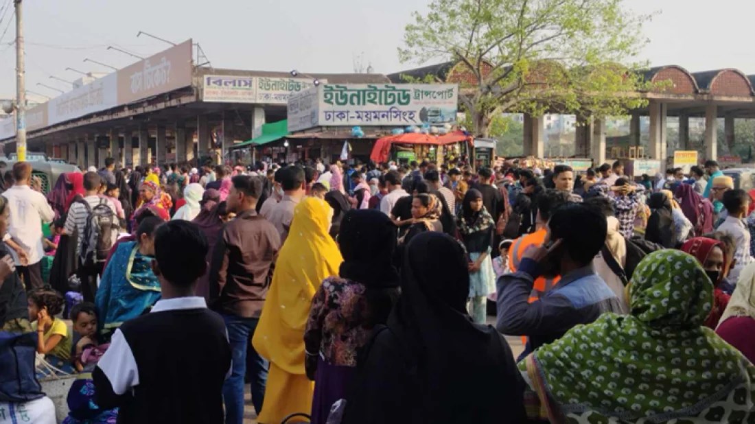 মহাখালী কাউন্টারে বাস নেই, ঘরমুখো যাত্রীদের দীর্ঘ সারি