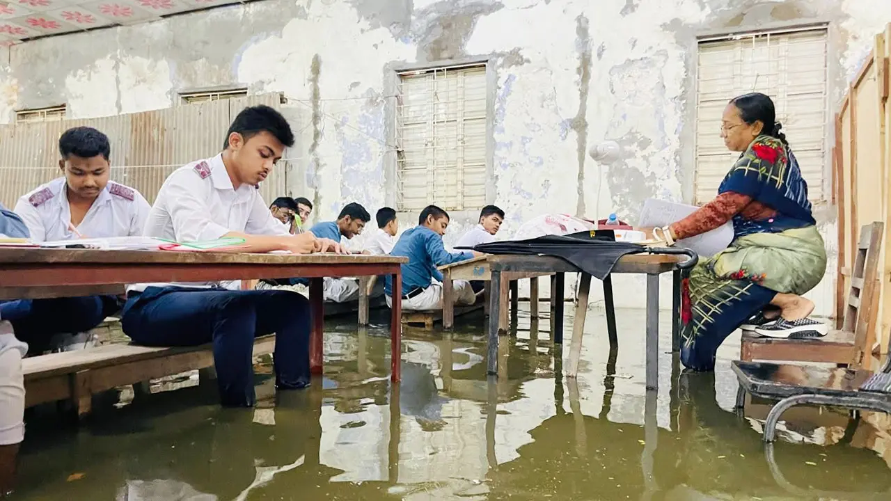 চলমান এসএসসি পরীক্ষার চতুর্থ দিনে বৃষ্টিতে বেশ জলাবদ্ধতা সৃষ্টি হয়েছে কুমিল্লার ইশ্বর পাঠশালা কেন্দ্রে। এতে বিপাকে পড়েছেন পরীক্ষার্থীরা। শিক্ষার্থীদের অনেকেই বেঞ্চে পা তুলে পরীক্ষা দিয়েছেন। কেউ পানিতে পা ডুবিয়ে, কেউ বা আবার দাঁড়িয়ে দাঁড়িয়ে। মঙ্গলবার (২৮ এপ্রিল) কুমিল্লায় অঝোর বৃষ্টি এবং বজ্রসহ বৃষ্টি হয়। এসময় কুমিল্লা নগরীর বেশ কিছু Details..